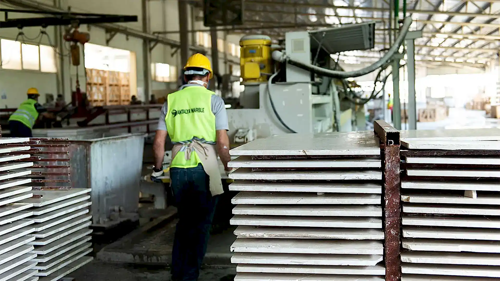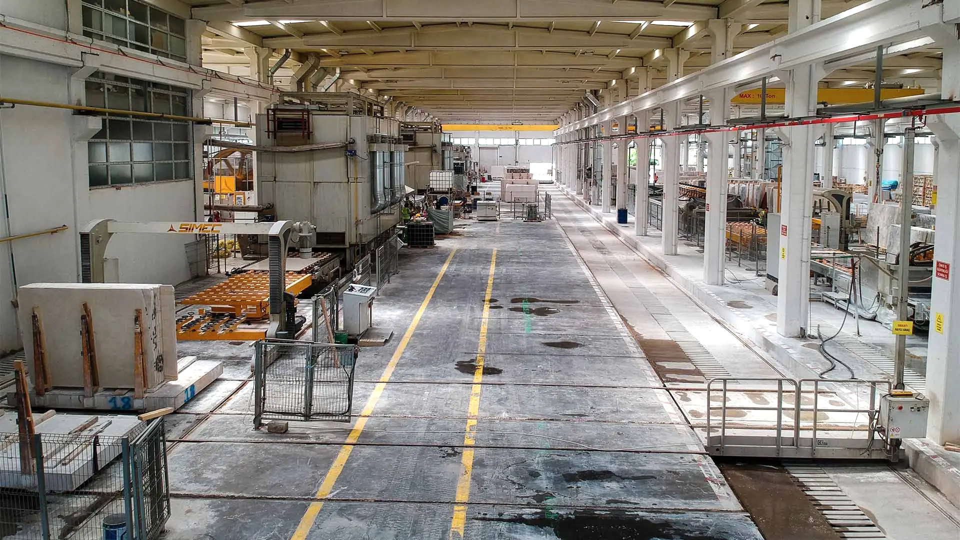 Antalya Organize bölgesinde bulunan 50.000 m2 alana kurulu fabrikadaki tüm makine parkuru İtalyan devi Simec ile kurulmuş olup, bünyesinde. 6 adet katrak makinesi, 2 adet katlı fırın,1 adet slim hattı, 1 adet plaka ebatlama makinası ve 1 adet köprü kesme makinası bulundurmaktadır.